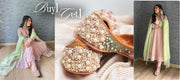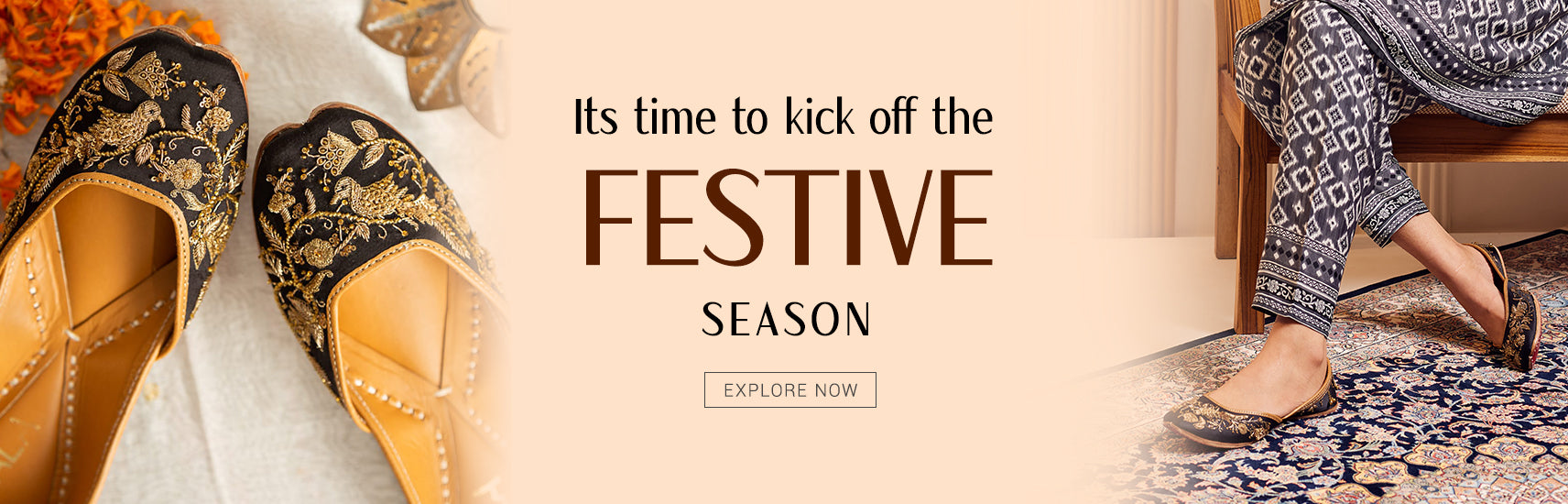 Make a striking statement with our "Khwahish" collection, says Khwahish. With its eye-catching designs, metallic accents, and elaborate workmanship, these embroidered juttis and mules will instantly elevate any look.