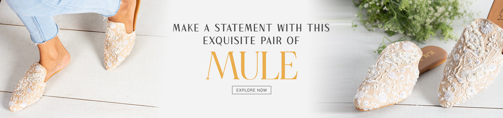 Discover the ideal pair of mojari for women and mules from our new collection of top sellers to boost your look and leave a memorable impression. With the highest care and attention to detail, each piece is made, guaranteeing both comfort and style. Accept the elegance and artistry of handcrafted shoes and treat your feet to luxury and beauty.