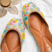 If a life full of peppy music, everlasting love, and good food is what you imagine, slip into our Peppy Melody Jutti. These juttis are adorned with intricate cross-stitch, ornate florals, and mesmerizing beads, are designed to leave you spellbound. These jutti will make every step a celebration of life’s joys.