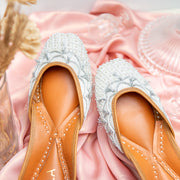 Tara: Have you ever dressed your feet with style and comfort? We make sure you never have to compromise on any of them. Grab your pair from our new addition “TARA” jutti & get your feet floating now! Hand crafted in delicate thread work along with zardosi. The contrast design styles, gives it a beautiful uniqueness unlike any other!